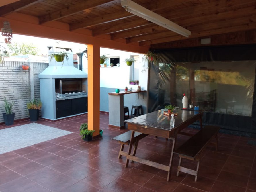 QUINCHO SEMICUBIERTO DE 3,43m X 5m CON TECHO DE CHAPA, PARRILLA Y BARRA