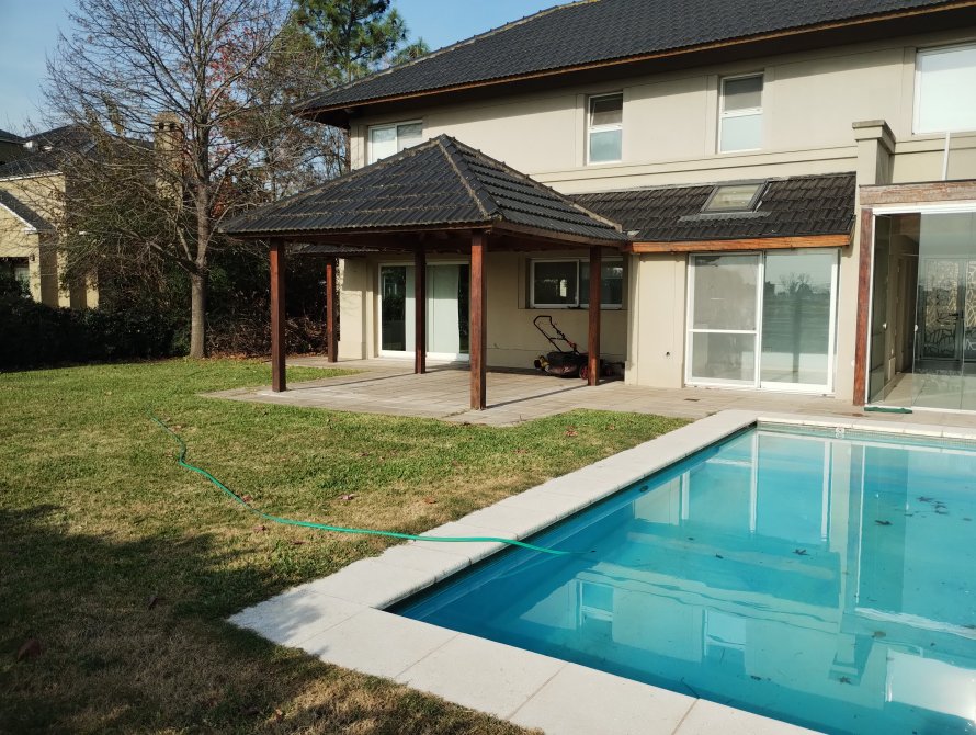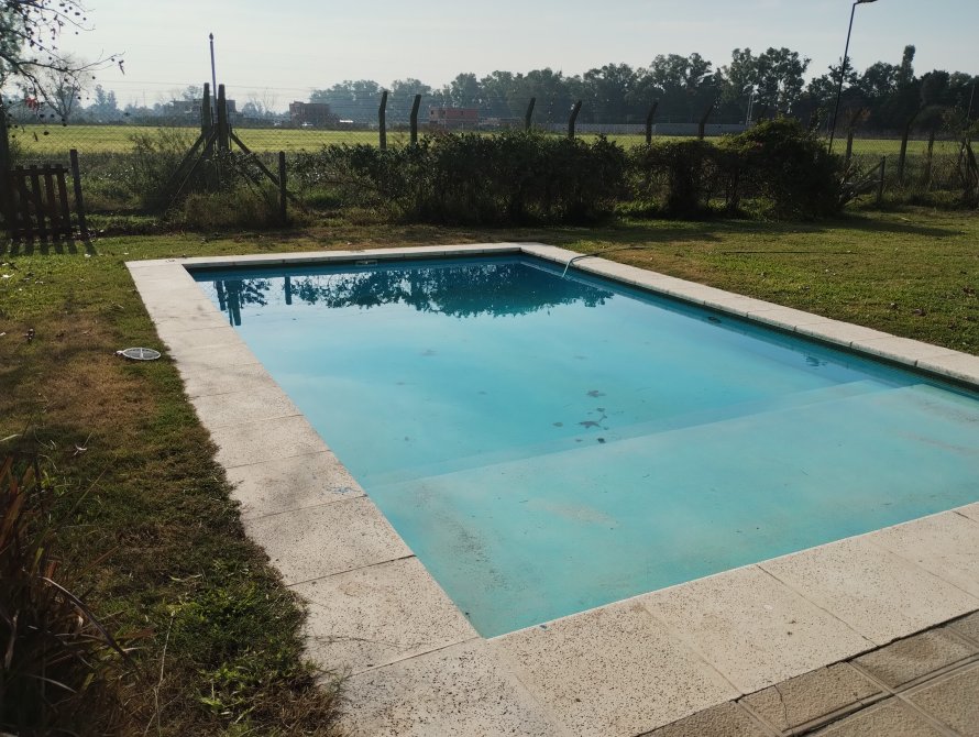 Lote parquizado y Piscina pintada con guarda en venecitas.